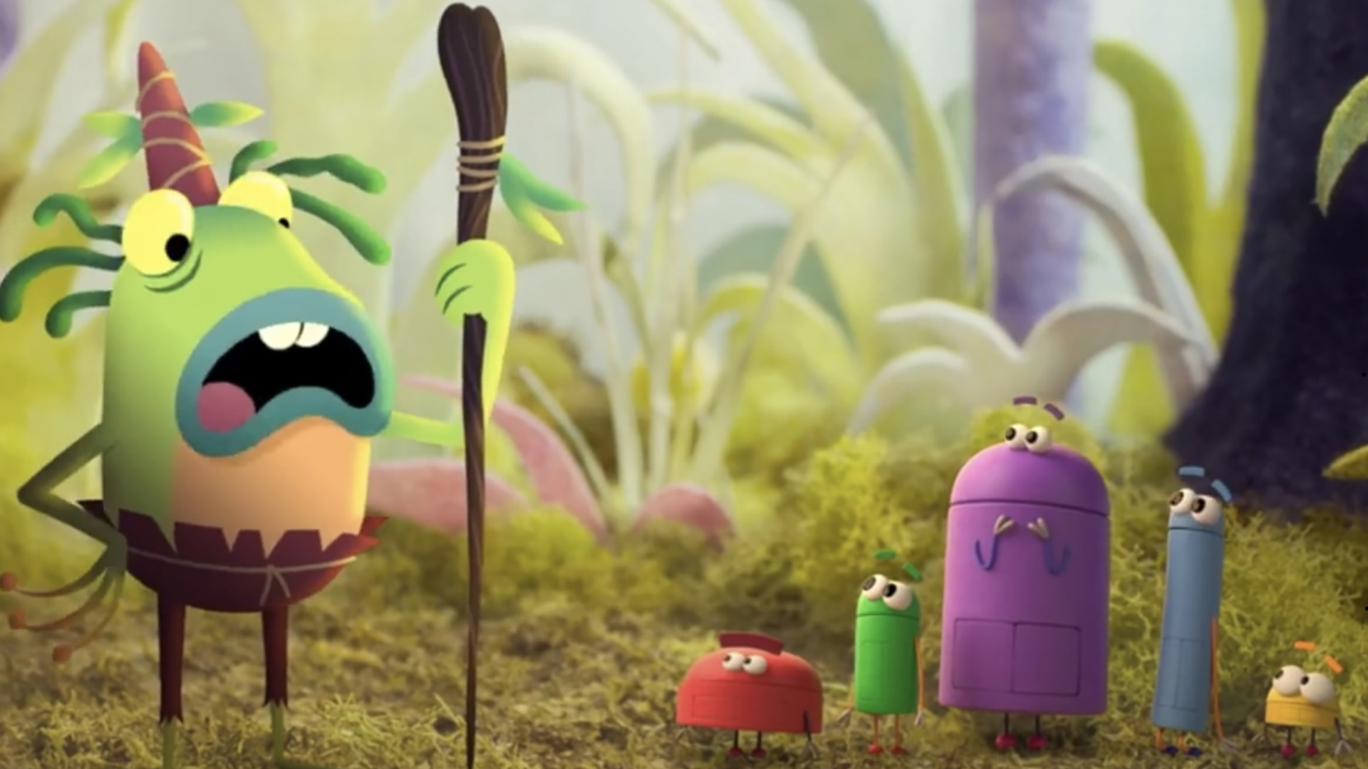 Number one on our list of great new educational television is Ask the StoryBots. This show is about five curious creatures that help kids answer big questions like: Why is the sky blue? Why can’t I eat dessert all the time? How do ears hear and why do people look different? The StoryBots are Beep, Bing, Bang, Boop, and Bo, also known as "Answer Team 341B." In each episode, the StoryBots explore the human world and ask other creatures for help, then share their answer in a musical video. In this episode, the StoryBots jump into a vending machine to find out where chocolate bars come from. Who doesn't want to know the answer to that?