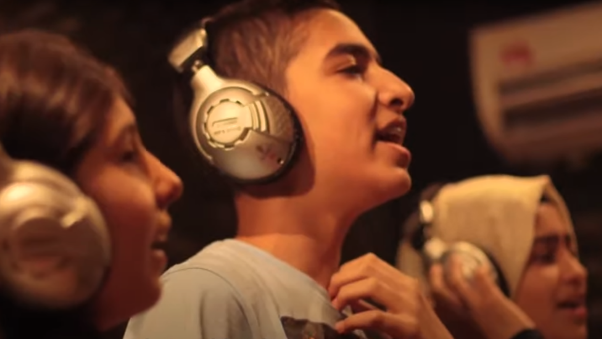 Filmed in Jenin in the Israeli-occupied West Bank, this graceful, poetic, and tender music video centers the voices of young Palestinian children proclaiming, through song, their “right for the world to hear my words.” The video begins at dawn as the city awakens. A young Palestinian boy walks through the souq, an open-air marketplace, taking pictures of children playing and working. Scenes of everyday life cut between recording sessions of the young vocalists as they relate their stories in verse and melody. Providing prudent advice, the young singers remind adults that education can’t be taught “with a stick,” and school should not turn “into a prison.” Symbolizing the power and enchantment of their defiant imaginations, the children declare that “with violence they can silence our songs. But our eyes will sing.” When the windows we use to see our world join others in chorus, perhaps our world can sing a joyful song.