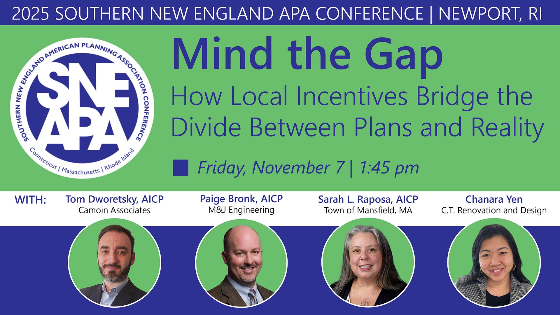 Our Vice President and Director of Research, Tom Dworetsky, AICP, will co-present a session titled "Mind the Gap: How Local Incentives Bridge the Divide Between Plans and Reality" at this year's conference.